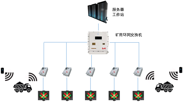 斜坡道紅綠燈智能控制系統(tǒng)主要解決井下斜坡道車輛定位和紅綠交通燈的控制,準確指示車輛行進或避讓(進入錯車位避讓),解決斜坡道車輛擁堵問題,并且最大限度提高井下通道的運行效率。