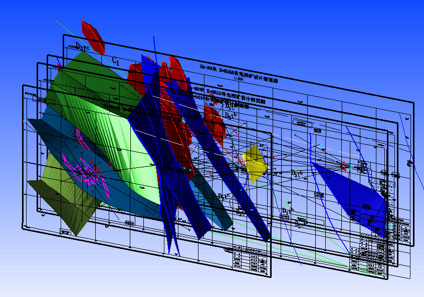 通過學習DIMINE,成功攻克了礦區(qū)原始圖件平剖面標高不對應的技術(shù)難題。針對我礦礦體南北延伸達3000m、巷道工程坡度變化大的復雜條件,創(chuàng)新采用巷道控制點連線→線附高程賦值的建模方法,精準還原了礦體界線的真實空間賦存狀態(tài)。基于此建立的全礦區(qū)三維礦體模型與實時更新的鉆孔數(shù)據(jù)庫,實現(xiàn)了三大技術(shù)突破:地質(zhì)資料動態(tài)綜合處理、數(shù)字化自動成圖與三維可視化仿真、地質(zhì)圈定-采礦設(shè)計全流程線上協(xié)同運行。